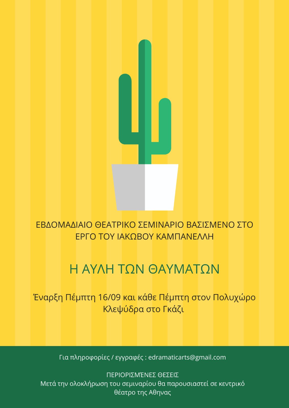 Απευθύνεται σε όλους όσοι επιθυμούν να ενσωματωθούν σε μια ομάδα ατόμων όπου μέσα από έρευνα, παιχνίδι, ασκήσεις φωνής, σώματος, αναπνοής , αυτοσχεδιασμούς , θα ζωντανέψουν την ιστορία και τους ρόλους που έγραψε ο Καμπανέλλης σε κεντρικό θέατρο της Αθήνας. Η παράσταση είναι το αποτέλεσμα όλης της διαδρομής του σεμιναρίου.
